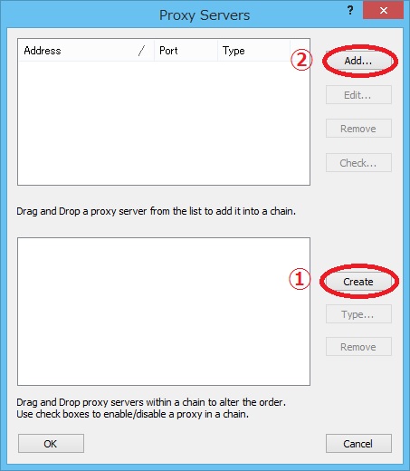 右上のProxy serversボタンをクリックし、次にProxy Chainsをクリックします。
