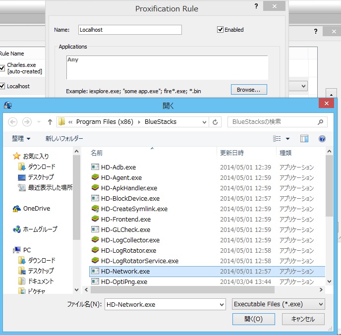 インストールしたBlueStacksフォルダ内の『HD-Network.exe』ファイルを開きます。