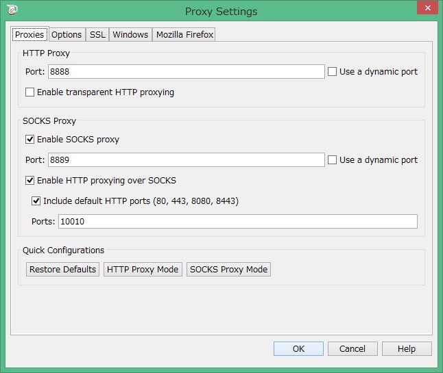 Enable HTTP proxying over SOCKSにチェック