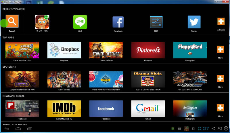 ↓これがBlueStacksのTOP画面です。